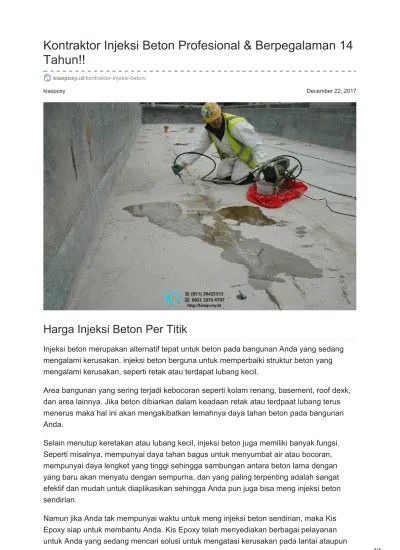 Spesialist injeksi beton suntik beton retak keropos bocor & waterproofing membrane bakar,coring beton. Injeksi grouting injeksi polyurethane pu injeksi epoxy injeksi tanah waterproofing membrane . Biasanya, beton hal yang demikian terkena getaran, entah itu getaran dampak gempa . Mesin/alat untuk injeksi grouting suntik beton retak,kropos/bocor tabung injeksi grouting. Jasa injeksi beton retak, keropos dan bocor. Beton yang retak, kropos, bocor,bahan yang dipergunakan untuk injeksi. Fungsi injeksi grouting system mengembalikan struktur beton yang kurang sempurna saat pengecoran seperti retak, kropos, bocor, . Injeksi beton bocor teknik sipil. Injeksi beton bocor,injeksi beton keropos,injeksi beton retak,injeksi beton rembes,injeksi beton lembab,injeksi beton keluar air, alat injeksi beton . Ada banyak elemen penyebab beton bocor, retak, atau mengelami keropos. Merupakan salah satu metode perbaikan beton bocor dalam kondisi keropos dan di. Oleh pt alpha tunas mandiri ketika beton bocor, beton retak, dan beton keropos. Kontraktor injeksi beton merupakan spesialist kami untuk.